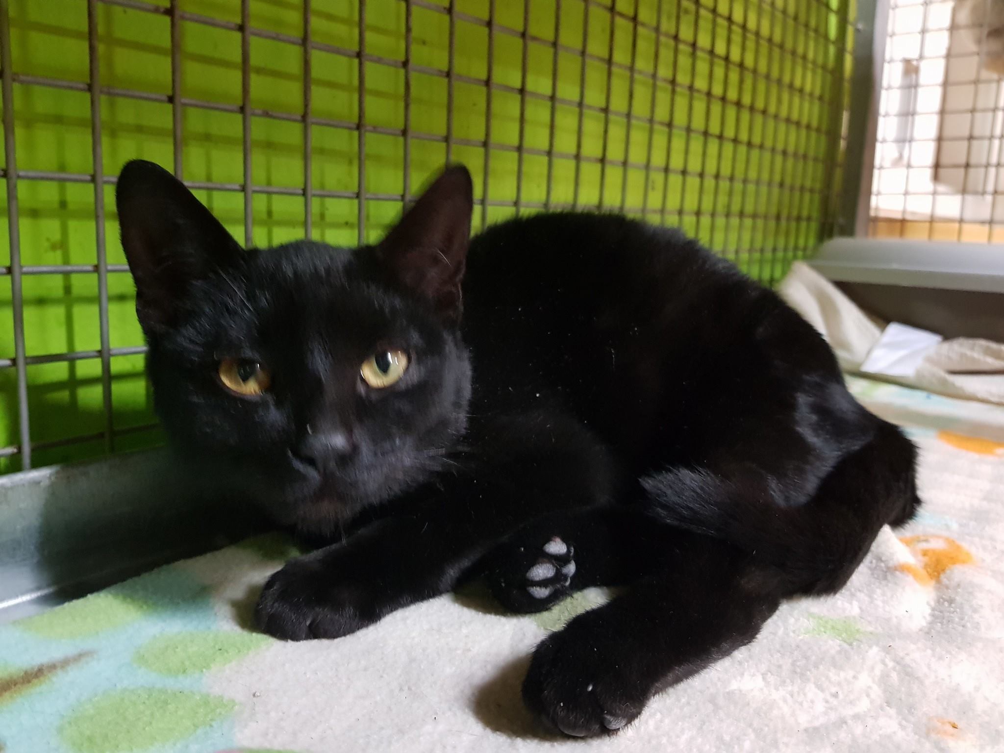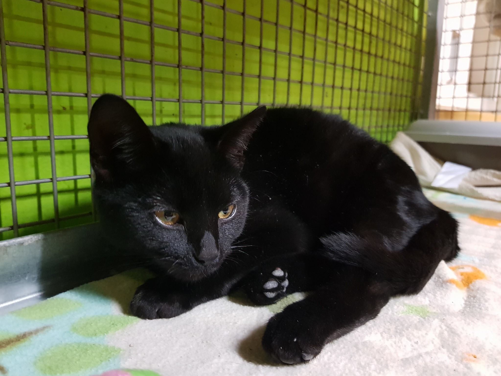 Máme dneska další příjem černého kocourka z Dobříně. Objevil se ve čtvrtek v přístřešku na auto u domu od nás vzdáleného asi 100 metrů. Může to být bratr Kayly, kterou našla Maruška plačíčí na zahradě Sluníčka. Zřejmě sem koťata někdo hodil a ona se různě rozprchla. Časově to odpovídá, akorát, že kocourek, teď už jménem Dobřík, je o půl kila těžší a větší než Kayla. Má přesně dvě kila.