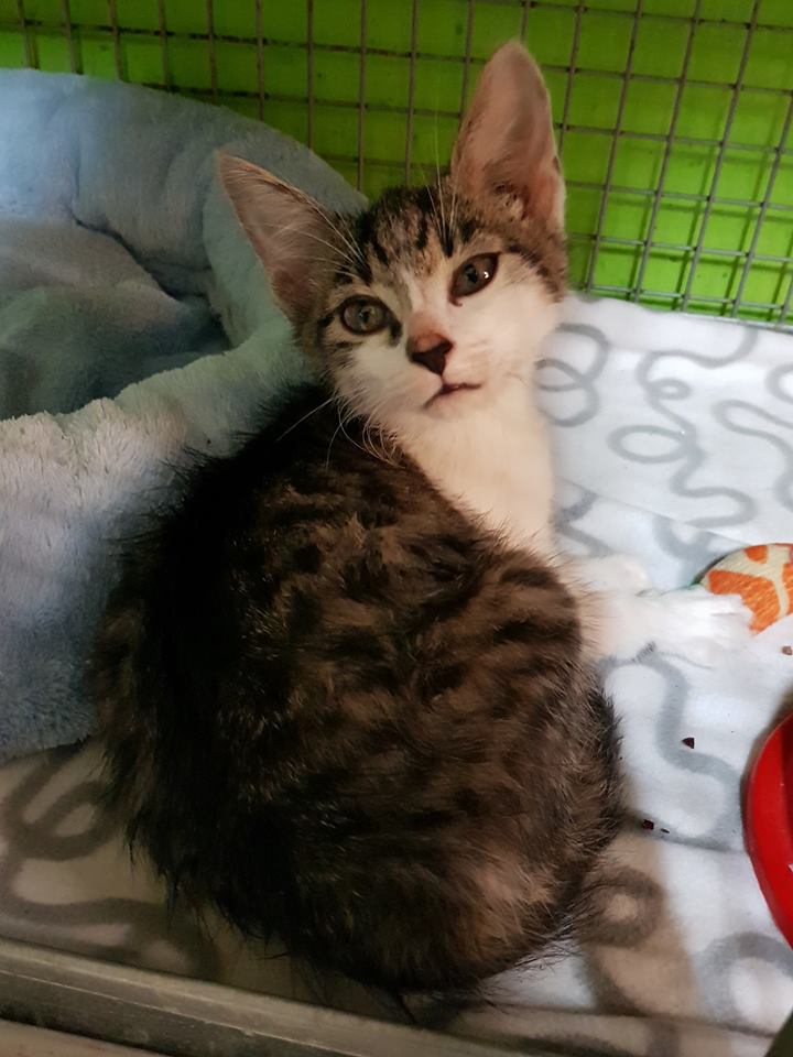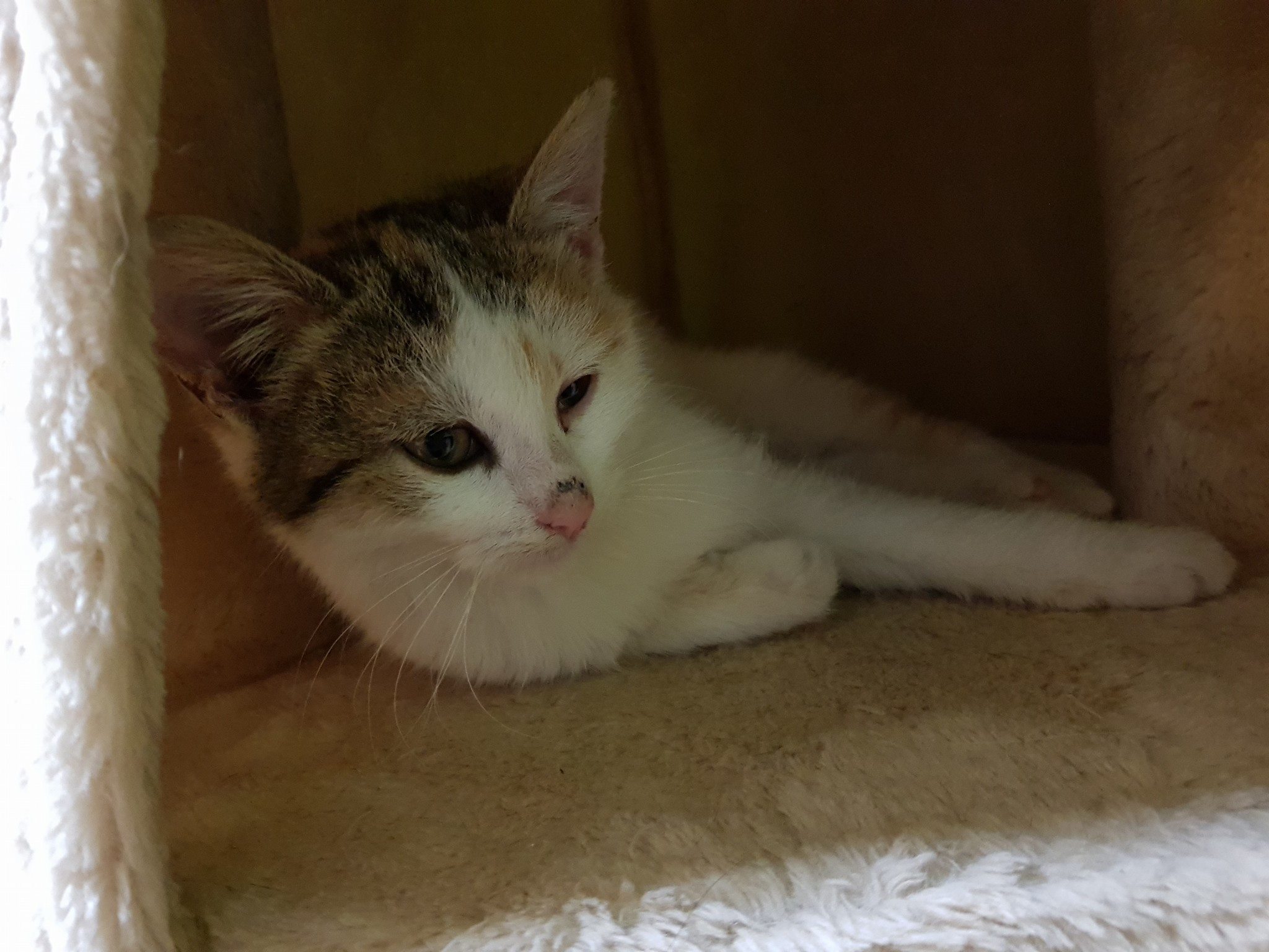 V pondělí jsme přijali bílomourovatého kocourka Družbíčka, který byl v krabici s hračkou u restaurace Družba v Litoměřicích. Kromě ušního svrabu vypadá docela zdravě.