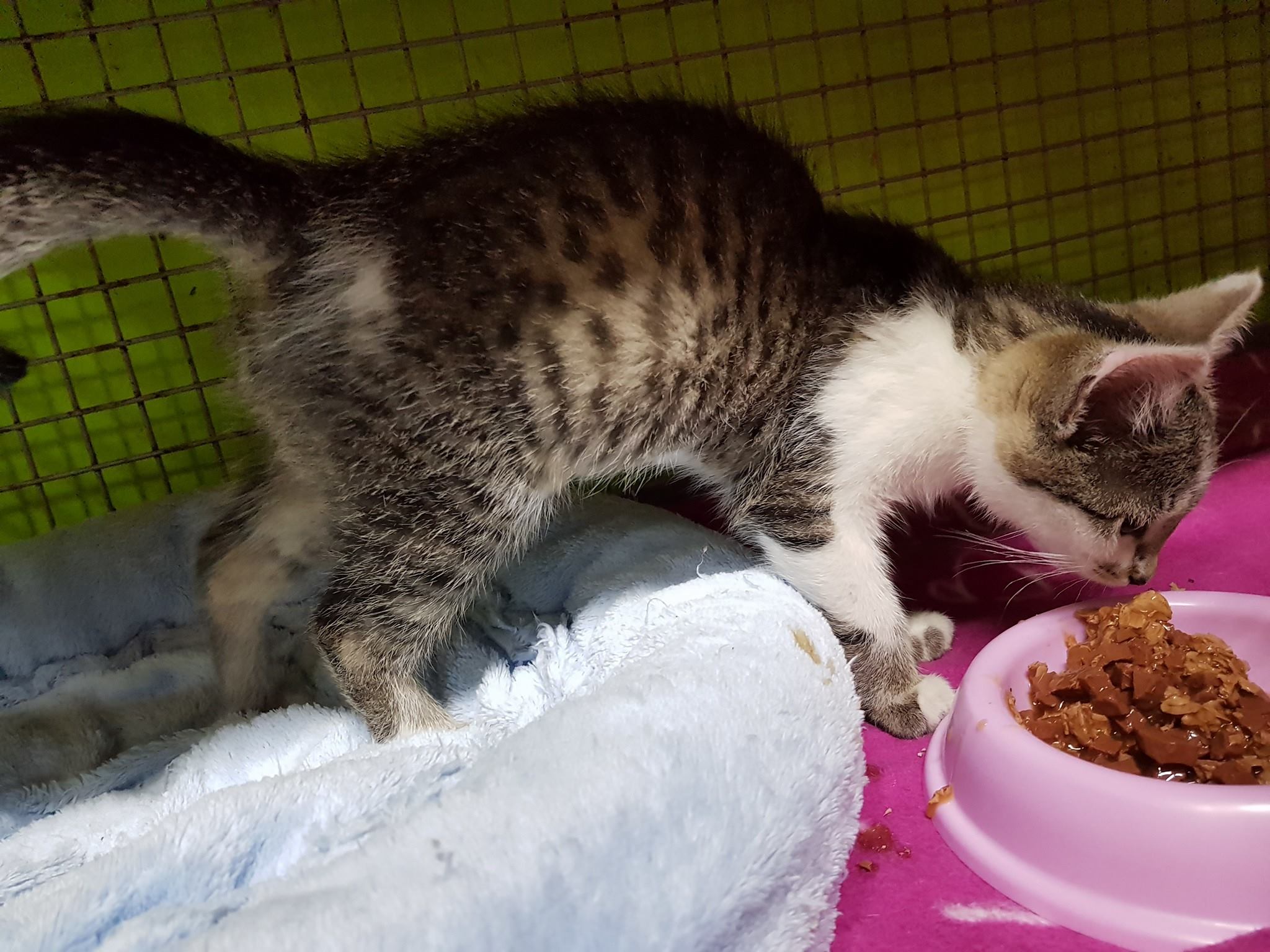 Týž den byla přijata bílomourovatá malá kočička Arabeska. Nalezena byla v ulici Libušina v Roudnici n.L., kde se schovávala pod auty.