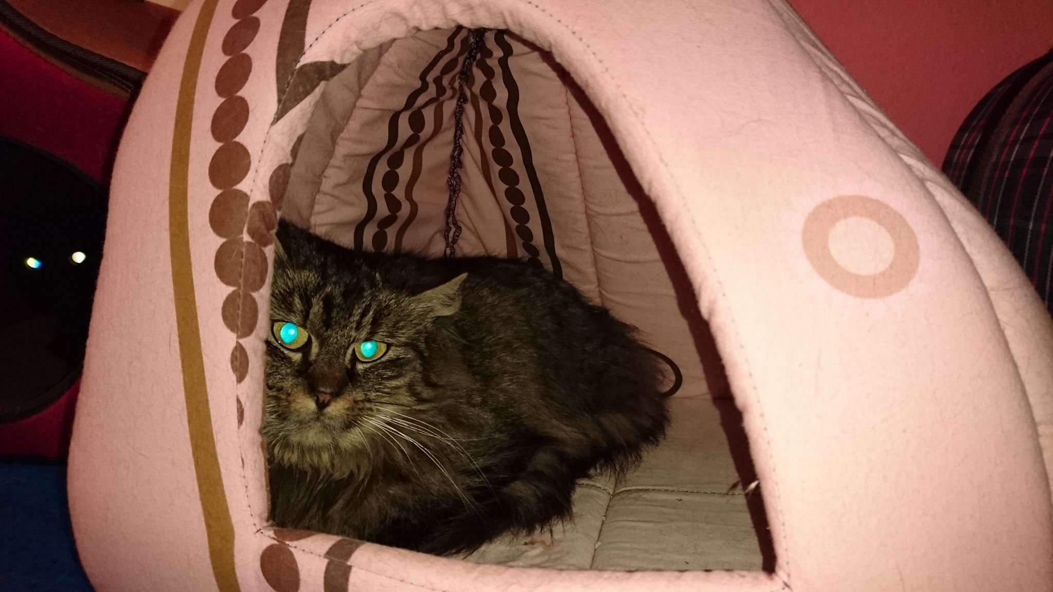 Dnes od pána, který údajně majitelce kočky, která zemřela, slíbil, že se o kočku postará. Neprověřovala jsem podrobně, zda pán mluví pravdu. Kočička cestovala ze Štětí z Mánesovy ulice volně ložená v autě, nechala se nosit, byla hodná, převzala jsem si jí a uložila ji do klece. Neprověřovala jsem podrobně, zda pán mluví pravdu. Kočička je hodně vystresovaná, nenechá na sebe sáhnout, je celá zadredovaná a nemá téměř žádný zub. Je jí asi deset let., je totiž možné, že kočička patřila právě těm, kteří ji přivezli, má veliké podezření.