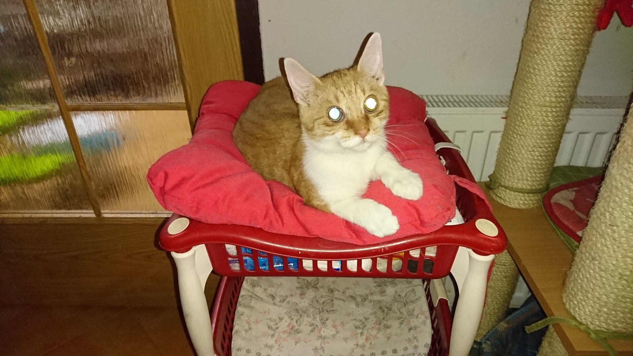 Další vyšetřenou kočičkou byla Meduňka. Má hlavičku na stranu, špatně se jí uchopuje jídlo a má přivřené pravé očičko. Potíže má s největší pravděpodobností díky zánětu v oušku a prasklému bubínku. Byly jí změněny antibiotika a dostala kapky do ouška.