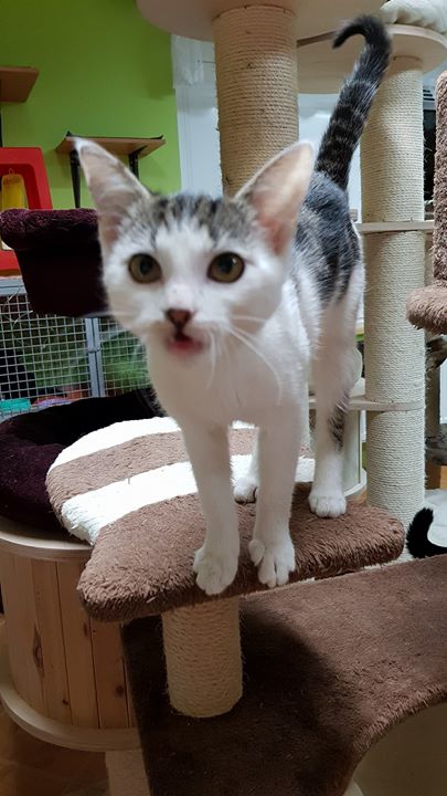 Krémový kocourek Luciáš má na jazyku ošklivé fleky, dostal antibiotika. Už je o hodně lepší, vypadá zde docela spokojeně, pokud ho netluče Mňoukálek. Ten nám dělá starosti, protože často napadá další kocourky. Přitom je to hezký, kontaktní kocourek, který však má obavy z ostatních kocourů, tak se na ně raději vrhne hned, asi se bojí, aby se nevrhl někdo na něho. A to je už déle po kastraci.