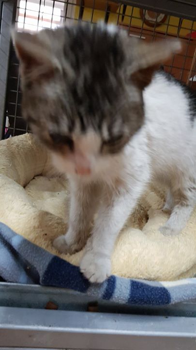 V pondělí časně ráno byl nalezen na dvoře Povodí Labe v Roudnici n.L. bílomourovatý, uslzený, špinavý, asi pětiměsíční kocourek.