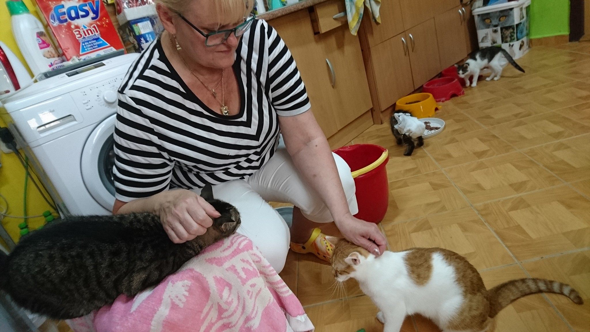 V pondělí přijatá stříbrnná dospělá kočička s bílými ponožkami ze zahrádkářské kolonie Hoštka dostala jméno Margarita. Jsou jí asi tři roky. Je hodná, mazlivá, hodně hubená s vystupující páteří. Pravé očičko má mléčné a zvracela. Takže mažeme a léčíme.