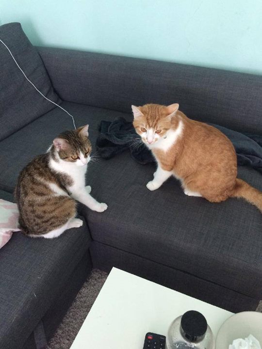 První dva až tři dny bylo občas trochu toho pošťuchování a syčení ale pomalu si na sebe začali zvykat . Teď už jsou kamarádi . Koupili jsme oběma nové domečky a hned si je přivlastnili.Tominku jsme si s dovolením přejmenovali . Teď se jmenuje Padmé. Zvykla si u nás celkem rychle a vypadá spokojeně . Oba vypadají spokojeně . Dobře papká a na svůj nový záchod si taky zvykla prakticky hned .Spinká sice trochu víc než Miky ,ale jinak je hravá a veselá .Myslím , že se jí u nás líbí .