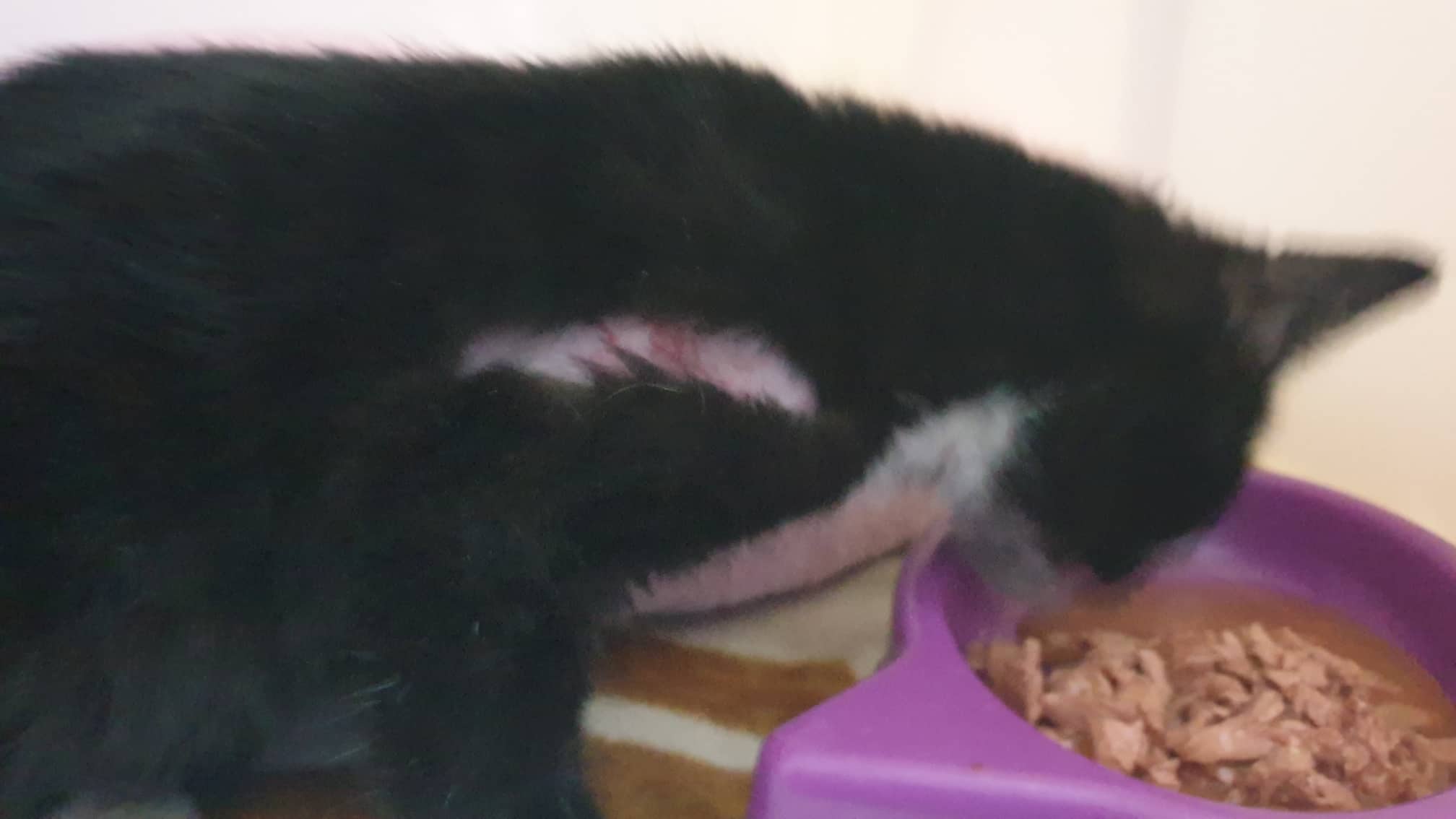 🔶Kilový černobílý chlapeček se sedřenou srstí na boku, skalpovanou kůží, ránou na hlavičce a ušním svrabem, hodně špinavý, byl včera večer nalezen zmatený na železničním přejezdu v Dobříni u Vitany. Dostal jméno Závorka.